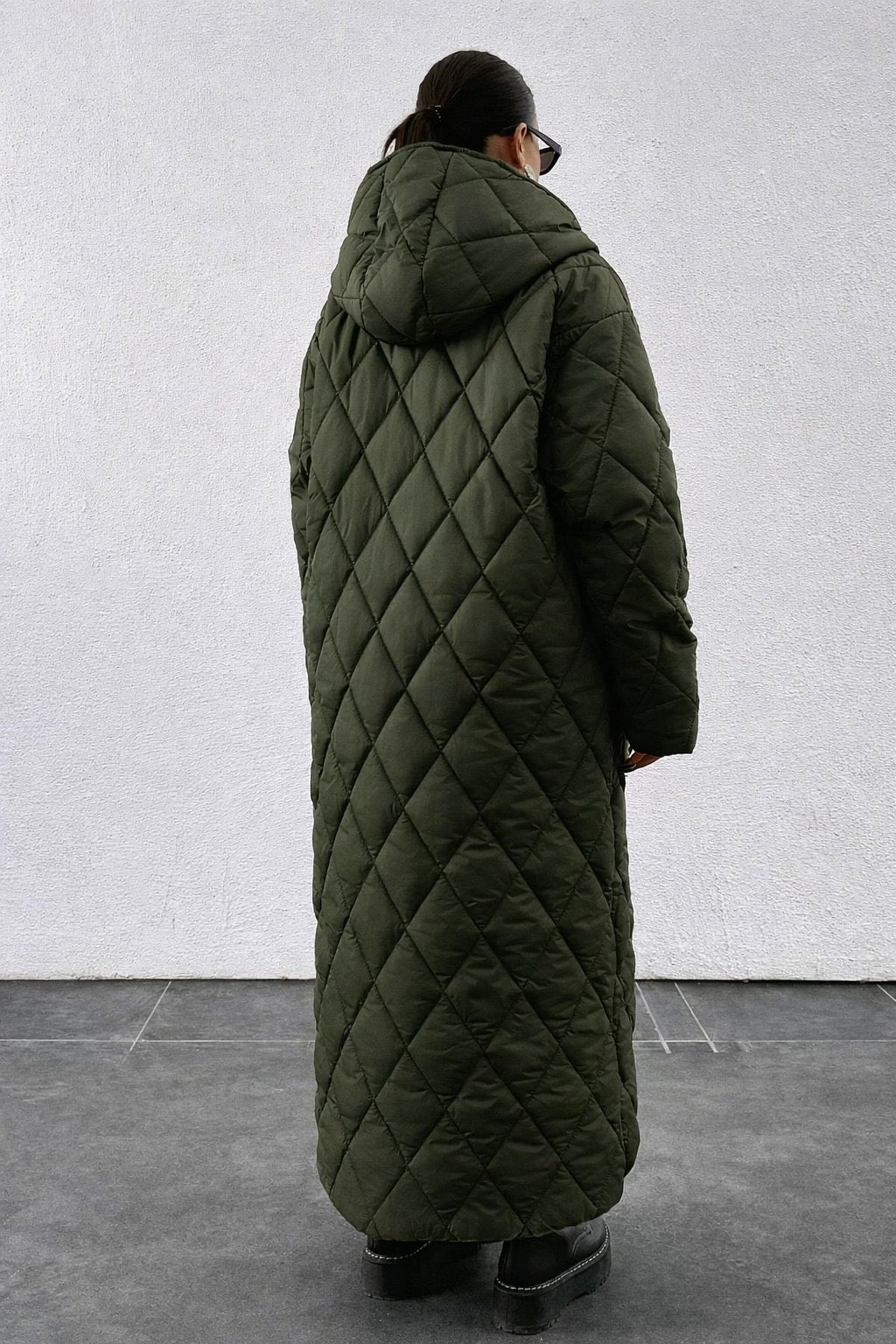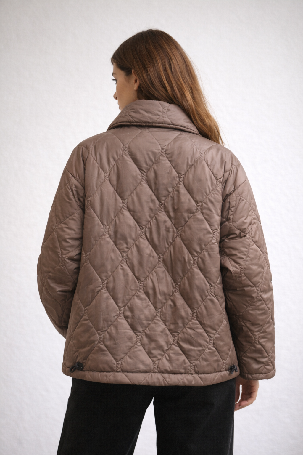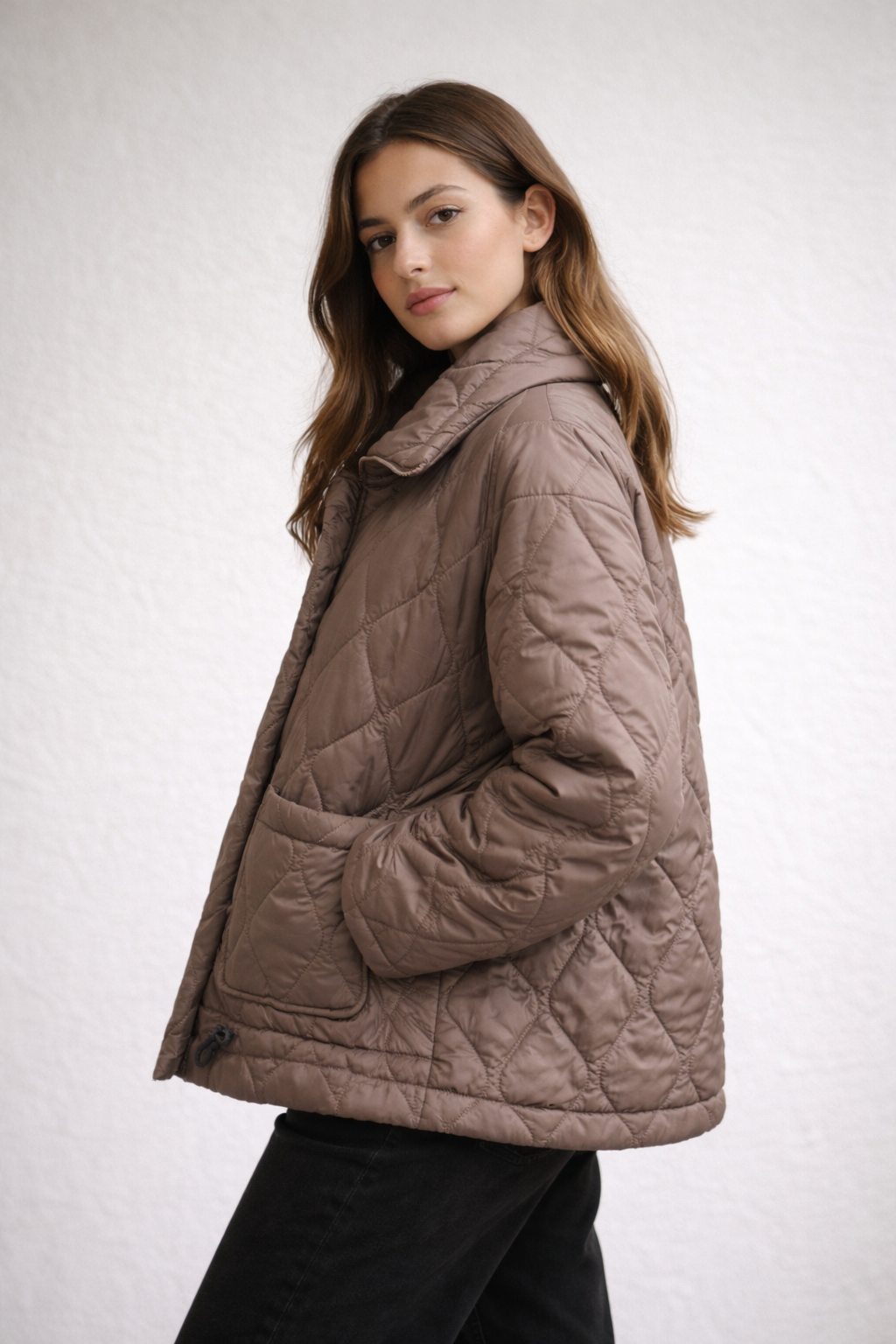 Kadın Kahverengi Kapitone Oversize Mont – Cepli, Fermuarlı, Soğuk Hava Uyumlu