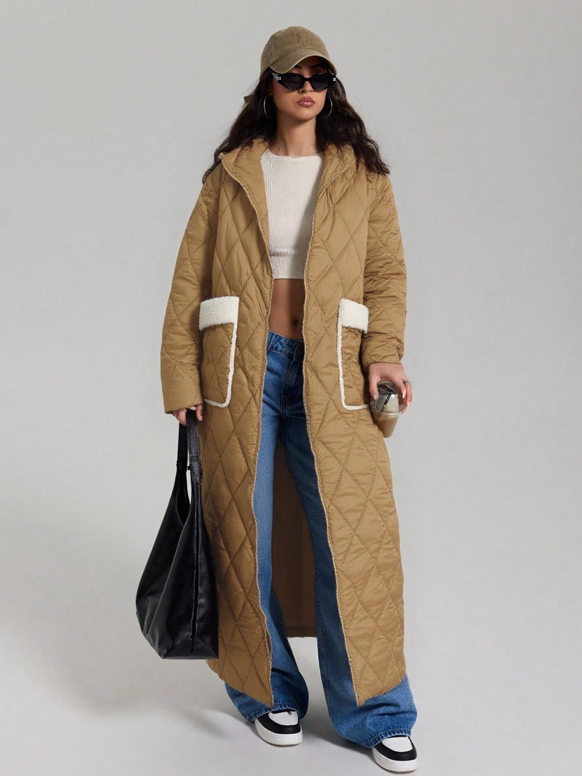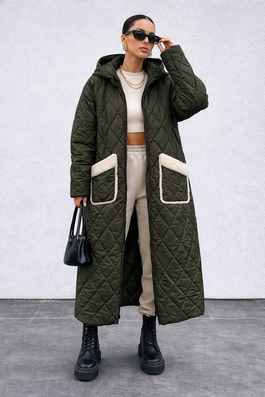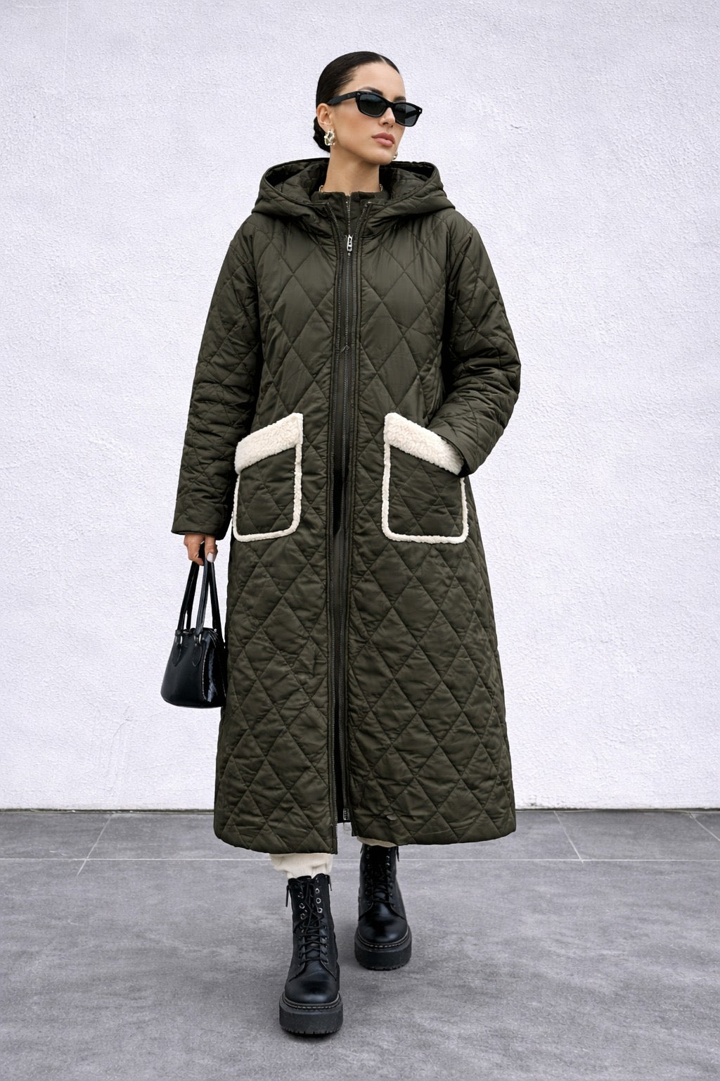 Kadın Kahverengi Kapitone Oversize Mont – Cepli, Fermuarlı, Soğuk Hava Uyumlu